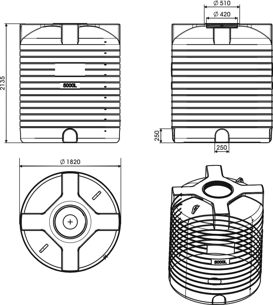 Бак 5000л комплектуется крышкой с «дыхательным клапаном». Емкость имеет специальные площадки для установки отводов и 2 проушины для транспортировки.
