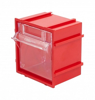Короб откидной Стелла-техник Single-102 красный, прозрачный предназначен для хранения мелкоштучных изделий. Данная система хранения не подвержена случайному опрокидыванию. Полезный внутренний размер ячейки 88х65х70мм. Пластиковый короб имеет специальные пазы, благодаря которым можно соединять между собой несколько коробов, наращивать в ширину и высоту до нужных размеров, образуя модульную систему. На задней стенке присутствуют отверстия, что позволяют навешивать их на стену. Преимущества: Обзорность содержимого сквозь прозрачные внутренние ячейки. Стандартный цвет наружной кассеты откидного короба-красный, внутренней-прозрачный. На внутреннем коробе есть специальный отсек для информационных съемных бирок. Легкое и быстрое извлечение внутреннего короба для опустошения или наполнения. Температура эксплуатации от -10 до +70С.