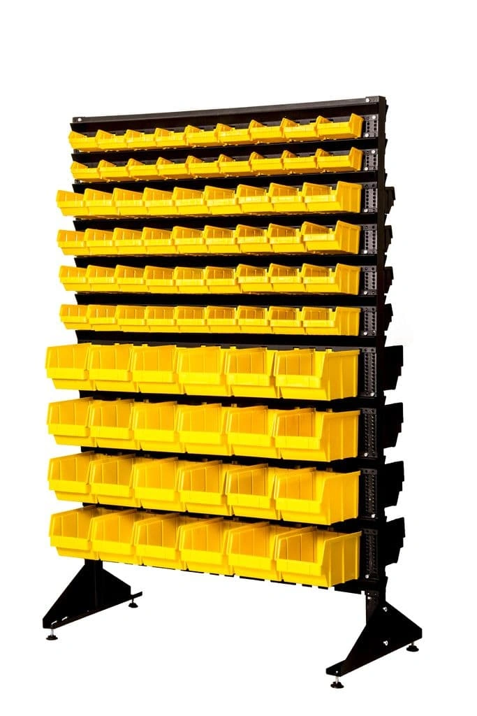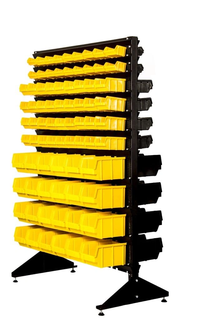 Стенд разработан специально для систематизации, хранения различных комплектующих, деталей, запчастей, крепежных и строительных материалов: болты, гайки, сверла, подшипники, метизы, фитинги, сантехника, зажимы, заклепки и т.д.