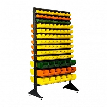 Стенд разработан специально для систематизации, хранения различных комплектующих, деталей, запчастей, крепежных и строительных материалов: болты, гайки, сверла, подшипники, метизы, фитинги, сантехника, зажимы, заклепки и т.д.