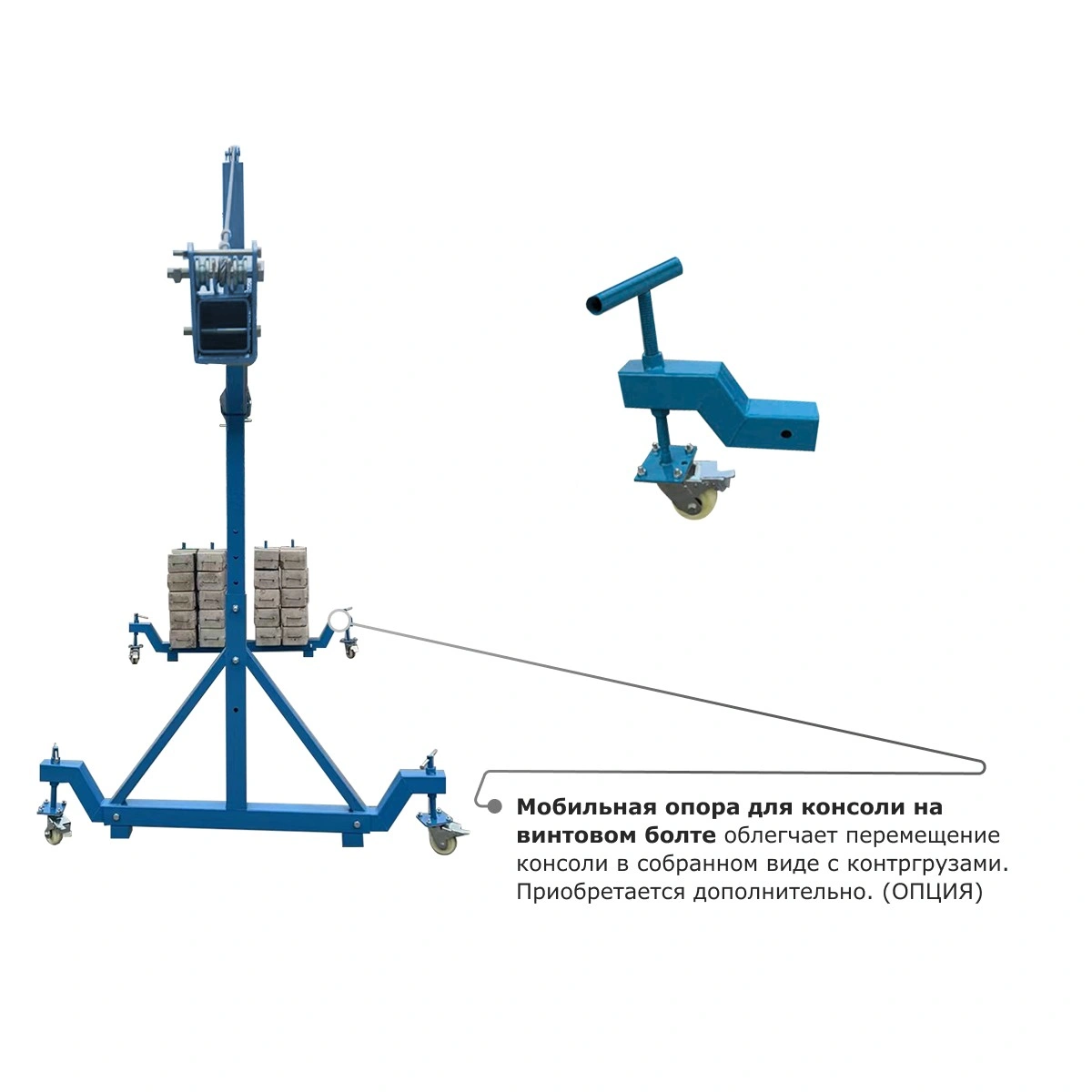 - Мобильная опора для консоли на винтовом болте облегчает перемещение консоли в собранном виде c контргрузами. Приобретается дополнительно.