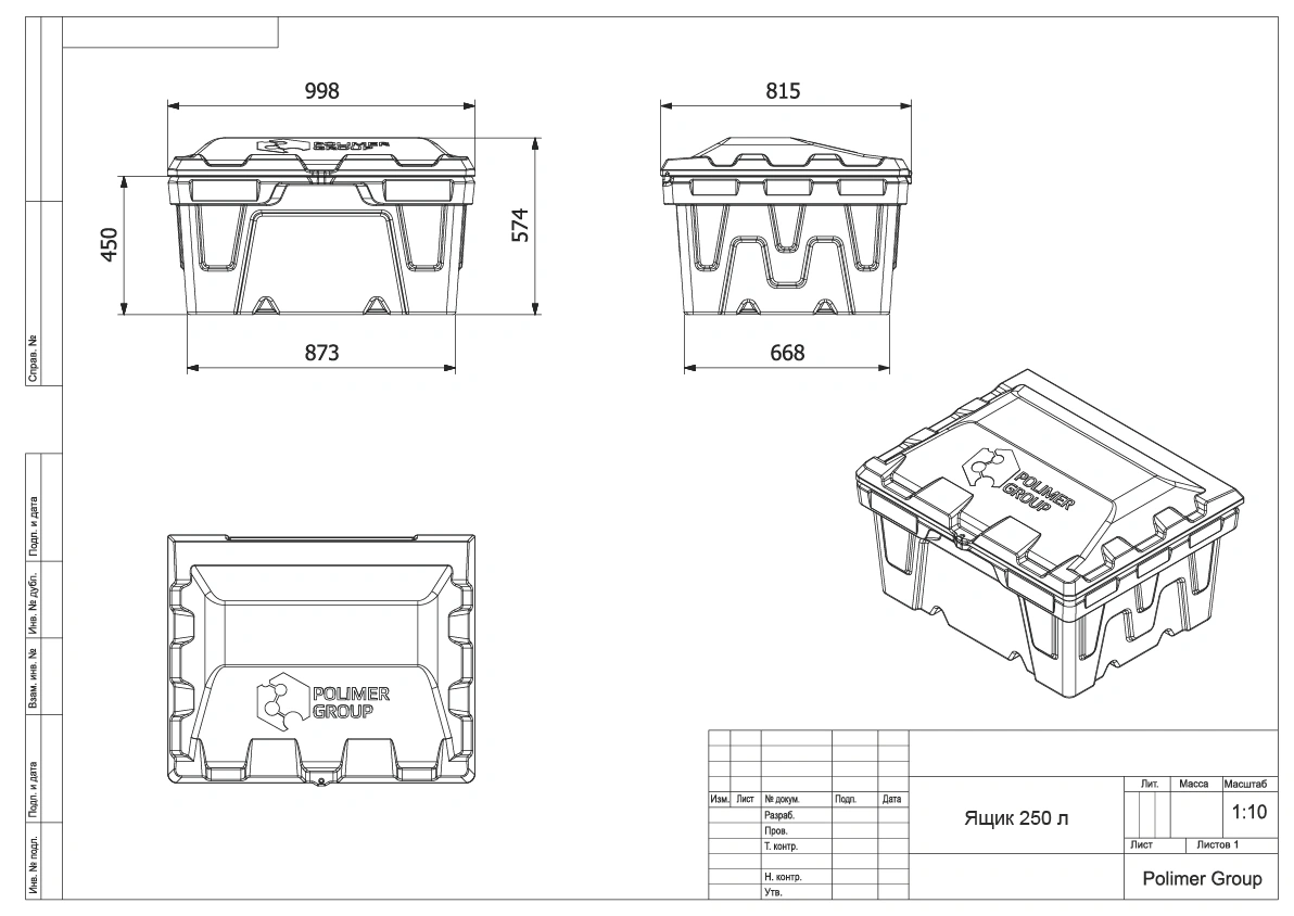 Объем контейнера для песка 250 л. Предназначен для хранения песка, применяемого для тушения пожаров на заправочных станциях. Изготовлен из полиэтилена методом ротоформования, что придает особую прочность.