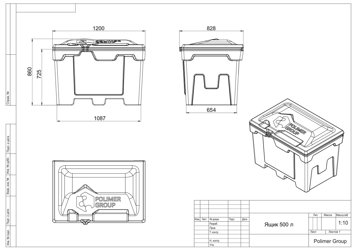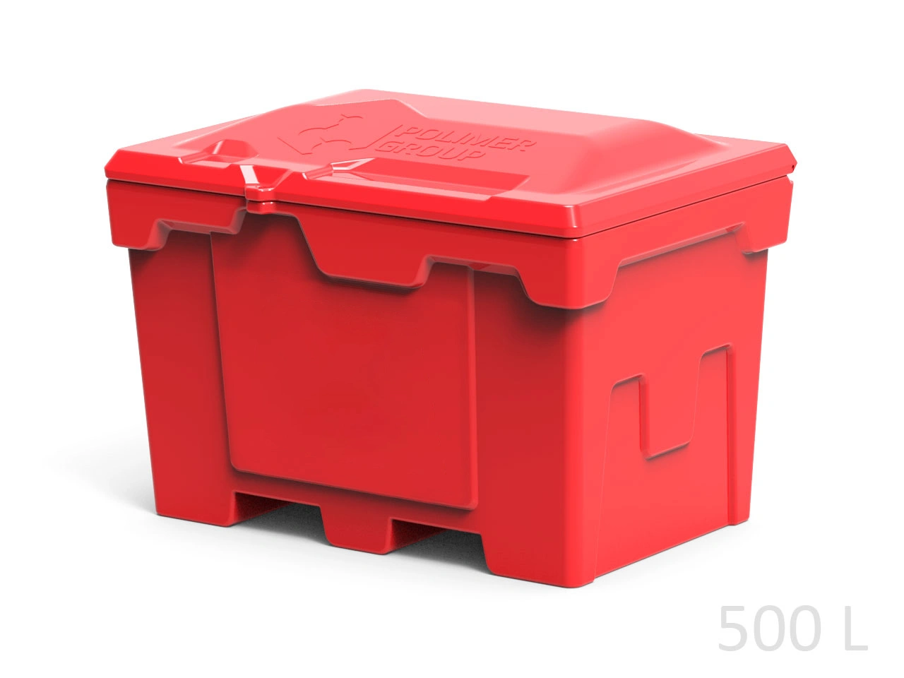 Объем контейнера для песка 500 л. Предназначен для хранения песка, применяемого для тушения пожаров на заправочных станциях. Изготовлен из полиэтилена методом ротоформования, что придает особую прочность.